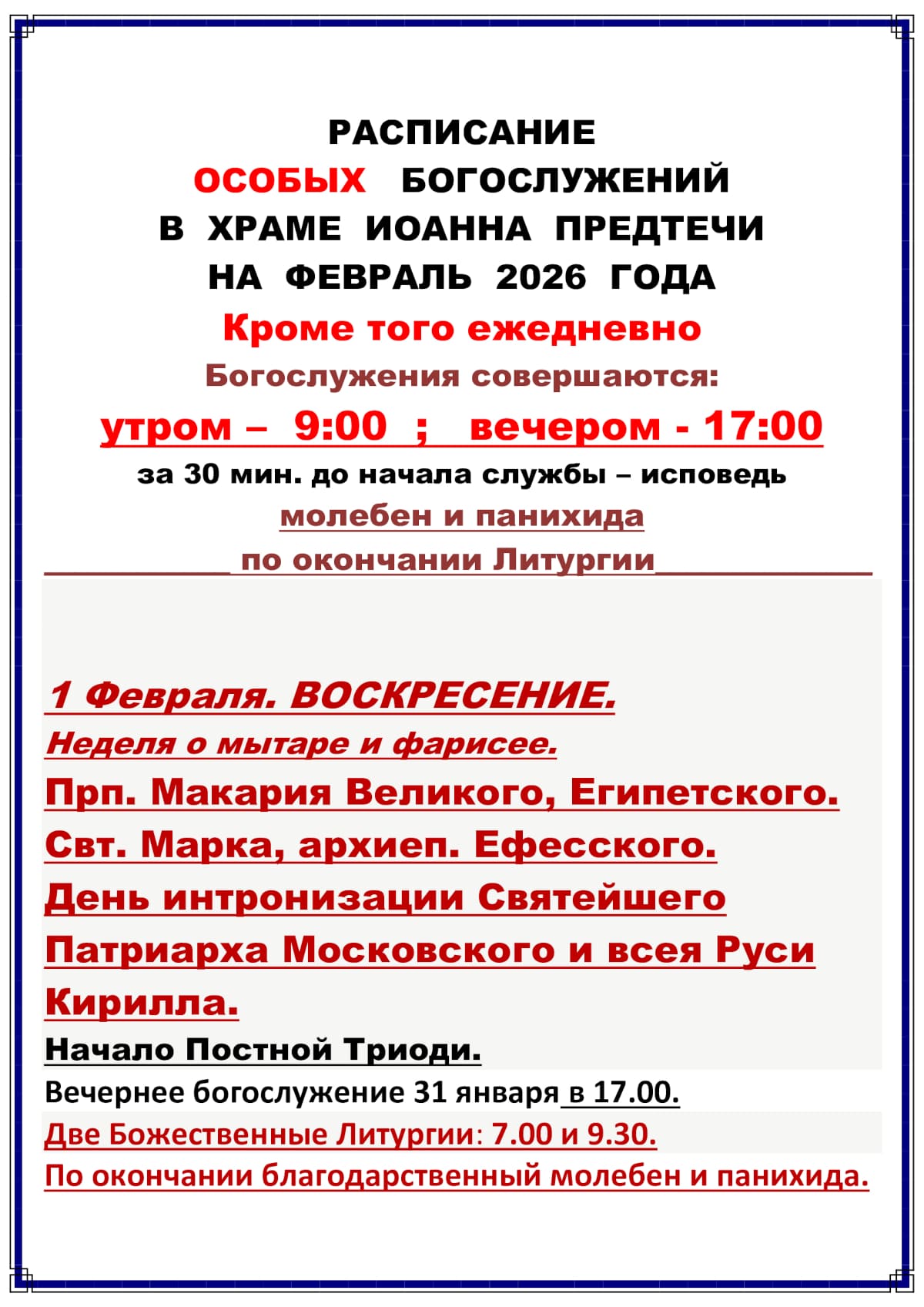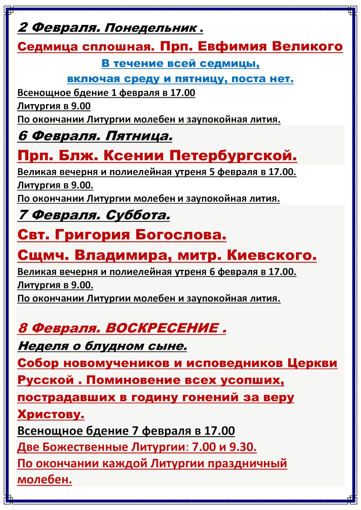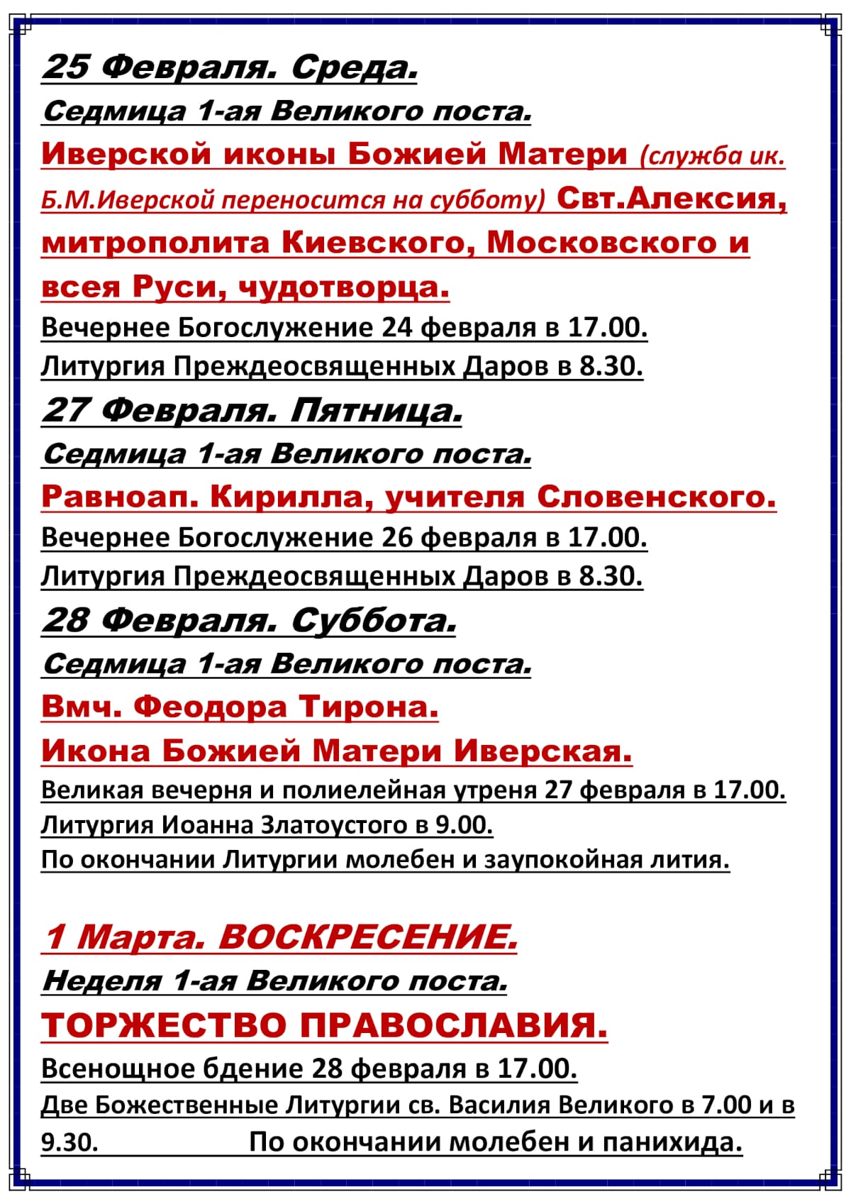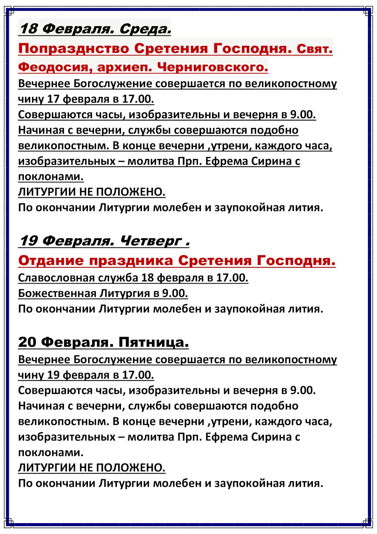 Расписание богослужений