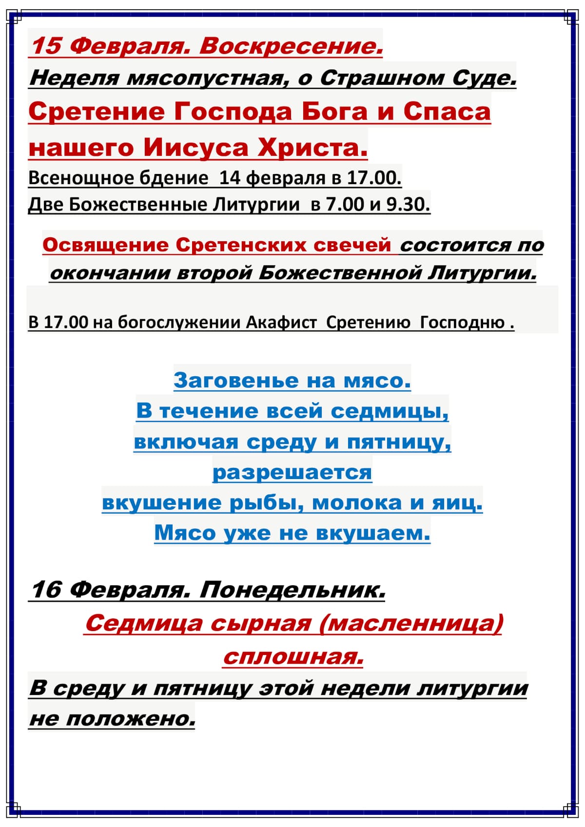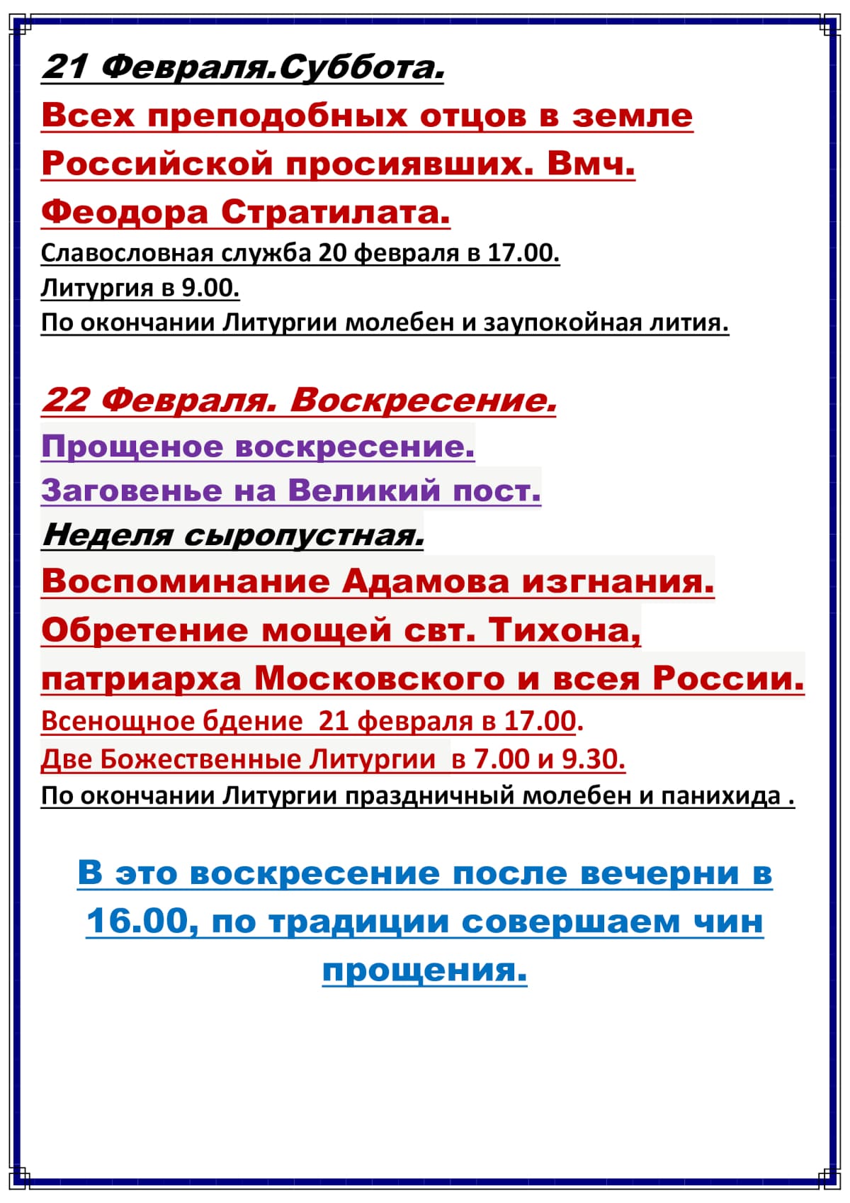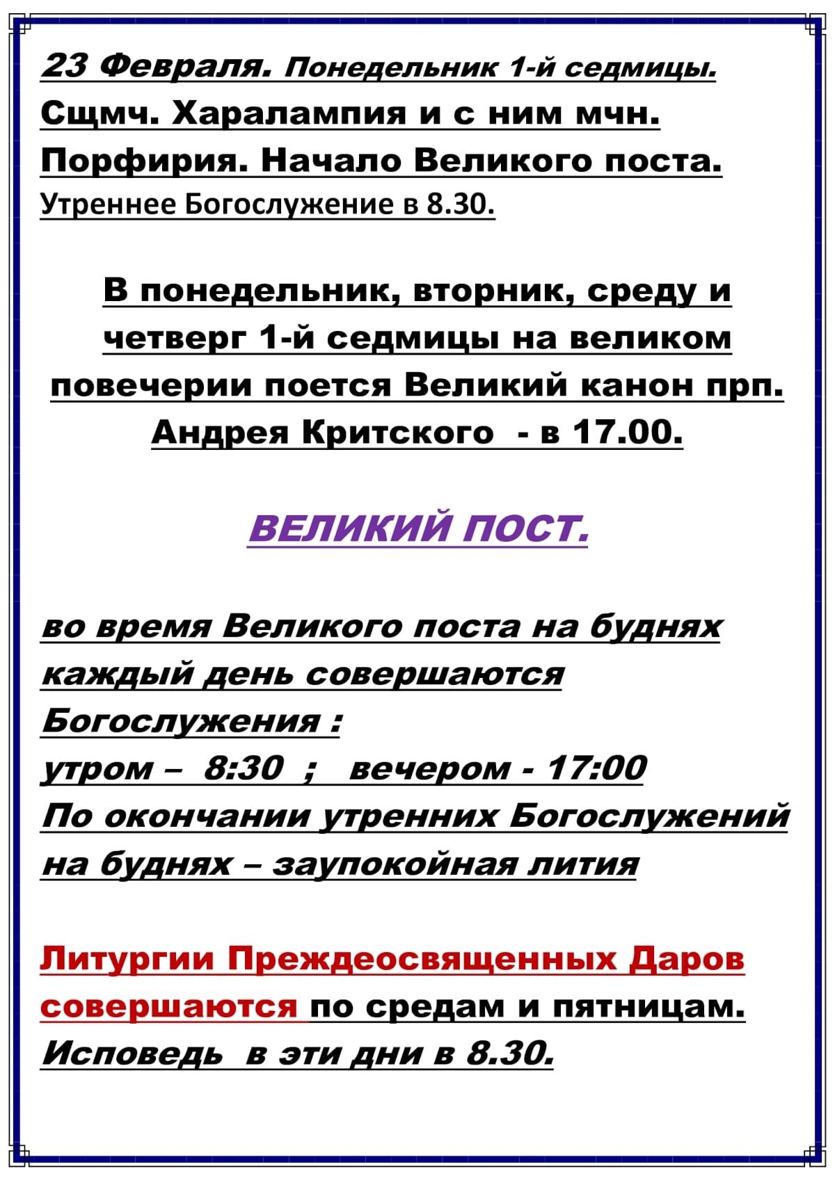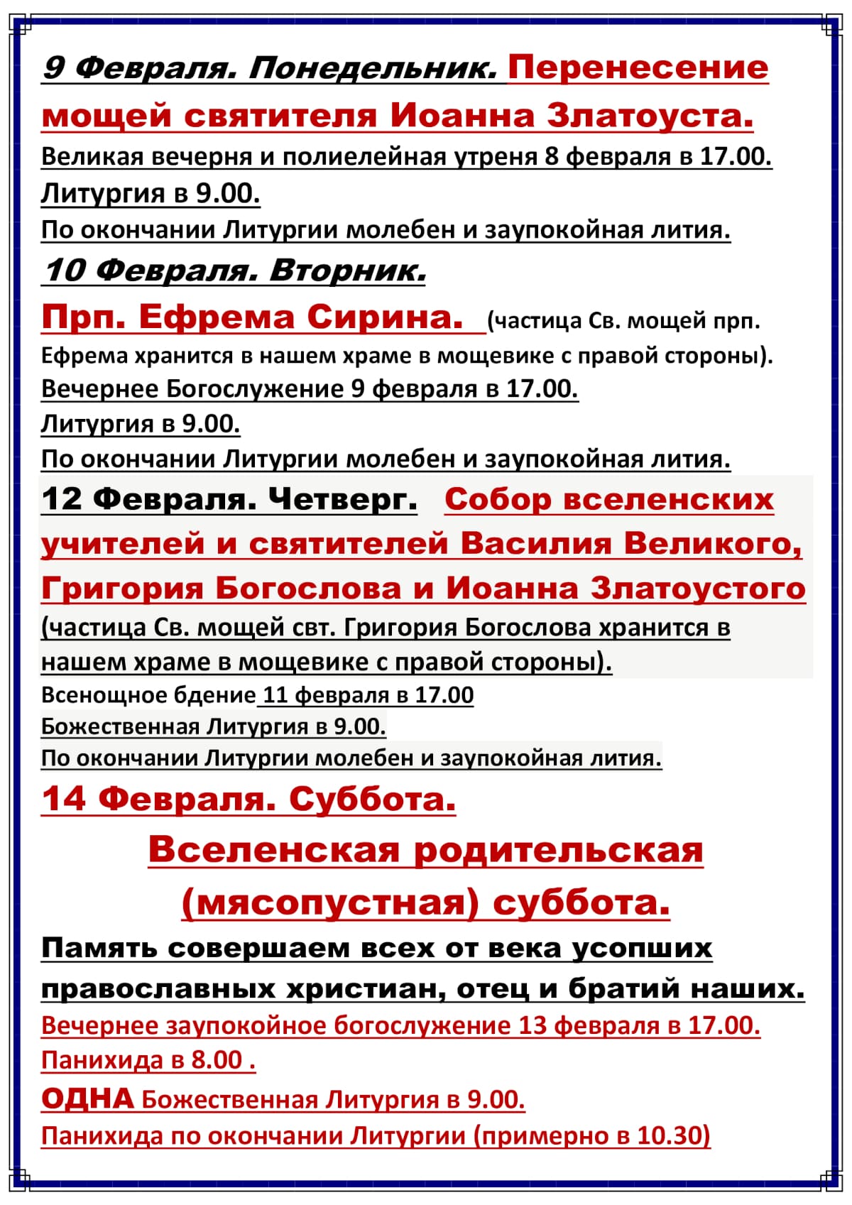 Расписание богослужений